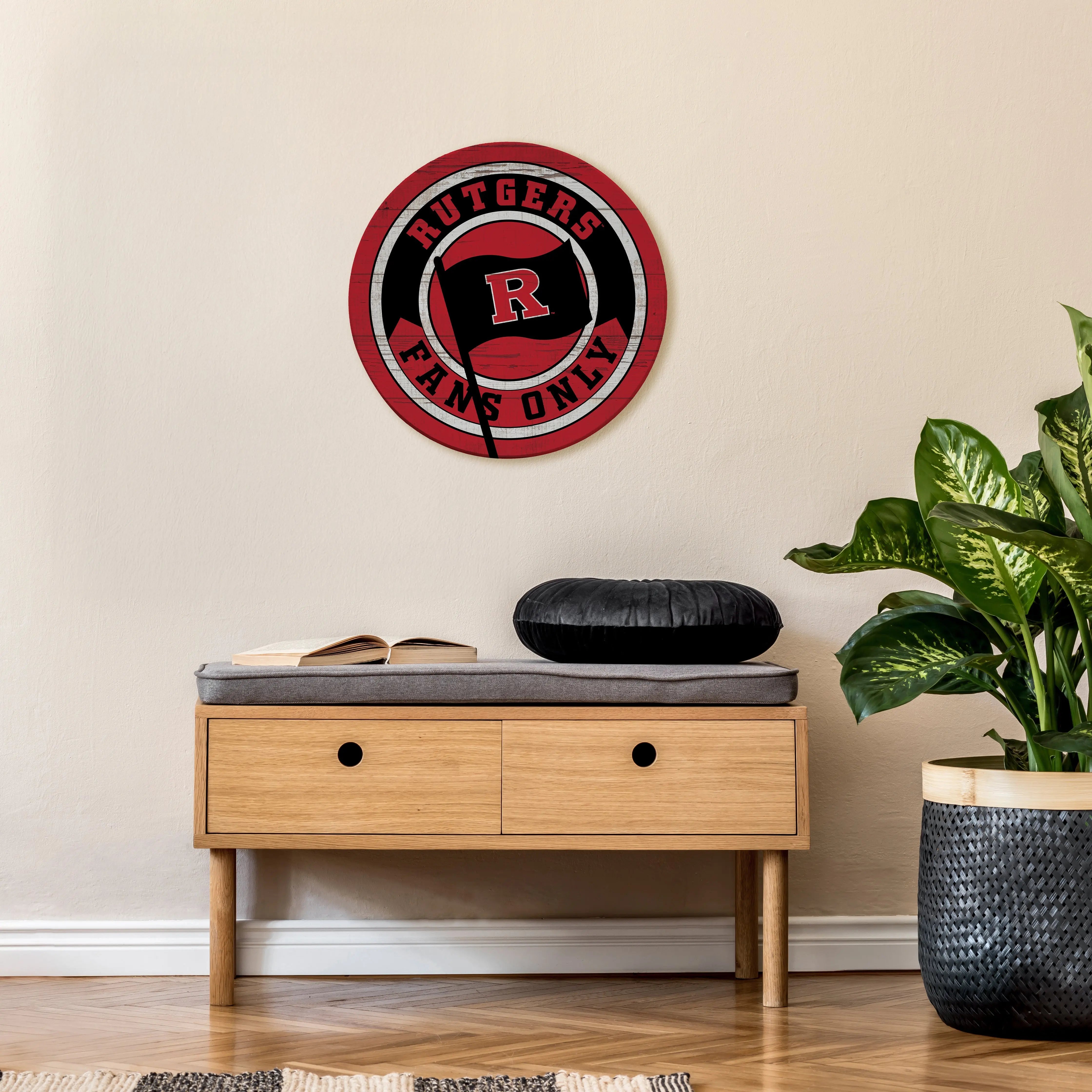 Each circle comes equipped with a sawtooth hanger on the back, making it easy to hang right out of the box. Proudly featuring officially licensed Rutgers University designs, this piece is perfect for any Rutgers fan.