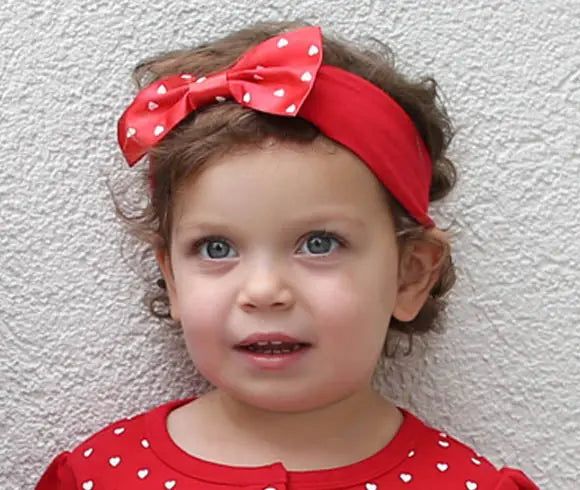 Brand new! Brand new! Don't miss our adorable heart headbands. Available in an infant one size or a toddler one size, we make our headbands with soft cotton bands that stretch and finish them with satin bows. These super comfortable headbands are sure to make any outfit pop!